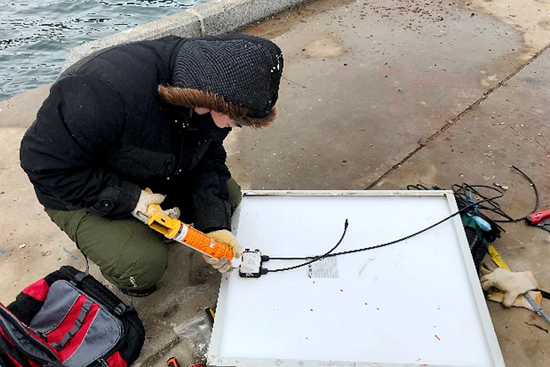 中國(guó)科學(xué)院近海海洋觀測(cè)研究網(wǎng)絡(luò)在北黃海獐子島海域布放的浮標(biāo)系統(tǒng)自2009年投入使用以來(lái),在位運(yùn)行時(shí)長(zhǎng)已將近九年,系統(tǒng)整體老化嚴(yán)重,加上今冬多次寒潮的影響,共有三套浮標(biāo)系統(tǒng)出現(xiàn)了系統(tǒng)工作不穩(wěn)定、數(shù)據(jù)中斷以及水下觀測(cè)數(shù)據(jù)異常等故障。針對(duì)故障情況,公共技術(shù)中心經(jīng)過(guò)仔細(xì)討論,提前制定詳細(xì)的維護(hù)方案,并作好充分準(zhǔn)備,在海況允許情況下現(xiàn)場(chǎng)對(duì)三套浮標(biāo)進(jìn)行了全面的檢修維護(hù)。此次維護(hù)工作主要包括浮標(biāo)系統(tǒng)的故障排除、附著海生物清理、接插件重新水密處理、安全隱患消除等內(nèi)容,其中05號(hào)浮標(biāo)系統(tǒng)完成了數(shù)據(jù)采集控制系統(tǒng)、供電系統(tǒng)以及傳輸線纜的徹底更換,并由原來(lái)的單一通信方式增加為CDMA+GPRS雙通信方式,提高了數(shù)據(jù)傳輸?shù)某晒β剩瑫r(shí)還安裝了獨(dú)立北斗定位系統(tǒng),以增強(qiáng)浮標(biāo)的安全性;04號(hào)浮標(biāo)系統(tǒng)完成了太陽(yáng)能板的維修以及太陽(yáng)能控制器的更換,并改進(jìn)太陽(yáng)能充電線路的密封方式,以降低供電系統(tǒng)因進(jìn)水導(dǎo)致短路的風(fēng)險(xiǎn),同時(shí)安裝銥星信標(biāo)進(jìn)行系統(tǒng)的獨(dú)立定位;02號(hào)浮標(biāo)系統(tǒng)完成了溫鹽傳感器的更換以及銥星信標(biāo)電池的更換。