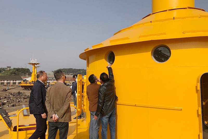 在平臺建造現(xiàn)場,技術(shù)人員對三錨式浮標綜合觀測平臺的標體建造整體情況進行了詳細質(zhì)詢了解,通過長期駐廠的質(zhì)量監(jiān)督人員了解了標體建造過程中各個環(huán)節(jié)質(zhì)量把關(guān)情況,對各部分的功能和技術(shù)指標進行了仔細檢查,并與浮標制造廠商相關(guān)人員針對進度問題進行了詳細探討,督促按照時間節(jié)點盡快完成包括智能絞車在內(nèi)的整套系統(tǒng)集成、聯(lián)調(diào)和下水海試等相關(guān)工作。