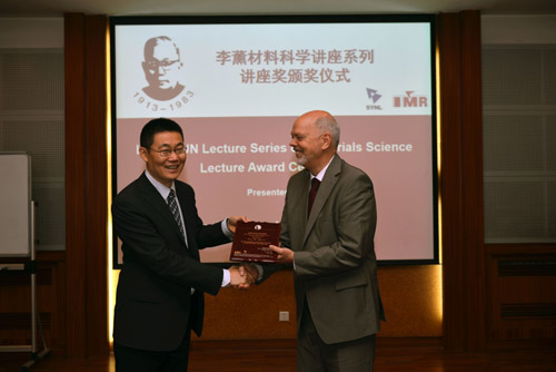 張健副所長代表金屬所為Uwe Glatzel教授頒發(fā)了李薰講座獎獎牌。訪問期間,Uwe Glatzel教授為我所科研人員和研究生作了題目為“Stress Contributions in Nickel-Base Superalloys”和“High Entropy Alloys - Materials for High Temperature Applications? and Introduction to the New German Priority Programme ‘Compositionally Complex Alloys - High Entropy Alloys (CCA - HEA)’”的學(xué)術(shù)報告。