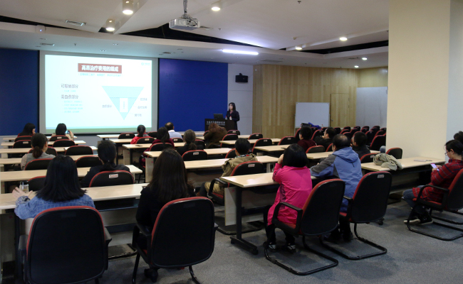 李文云首先為大家簡要介紹了太平人壽公司及其主要業(yè)務;她詳細解讀了健康風險管理相關數(shù)據(jù)和案例,并向大家分析了投保原則、主要誤區(qū)和注意事項;最后,她介紹了太平公司的終身重疾險、團體員工福利意健險以及車險等保險方案。宣講結束后,與會人員針對感興趣的問題進行了熱烈的交流。