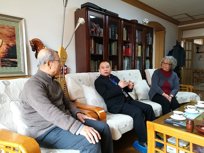 在走訪王秀巖、邱晶明夫婦時(shí),所長劉中民親切詢問了他們的日常生活、身體健康情況等。當(dāng)?shù)弥麄儎倓偮糜位貋頃r(shí),劉中民表示十分贊同,鼓勵(lì)他們多出去走走,切身感受近年來國家發(fā)展帶來的巨大變化。交流中,劉中民還介紹了大連化物所近期主要工作,與前輩分享工作中的苦與樂,對(duì)老同志為科研事業(yè)做出的貢獻(xiàn)表示敬意。