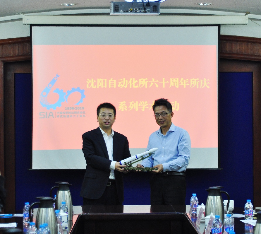 此次交流是沈陽自動(dòng)化所所慶60周年系列學(xué)術(shù)活動(dòng)之一。劉付成祝賀沈陽自動(dòng)化所建所60年來所取得了重大成就,并代表803所向沈陽自動(dòng)化所贈(zèng)送了長(zhǎng)征火箭模型,祝愿研究所事業(yè)蒸蒸日上,為國家經(jīng)濟(jì)社會(huì)發(fā)展和人類科技進(jìn)步做出新的貢獻(xiàn)。(工程處)
