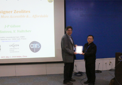 5月3日下午,法國卡昂大學Jean-Pierre Gilson教授受邀在中國科學院大連化學物理研究所生物樓學術報告廳做了題為“Designer Zeolites: Better, Smaller, More Accessible & Affordable”的第VI期中國科學院大連化學物理研究所70周年所慶學術報告。所長劉中民及相關領域的科研人員和研究生參加了報告會,劉中民代表大連化物所向Gilson表示歡迎并頒發(fā)了所慶學術報告獎牌。報告由大連化物所徐云鵬研究員主持。