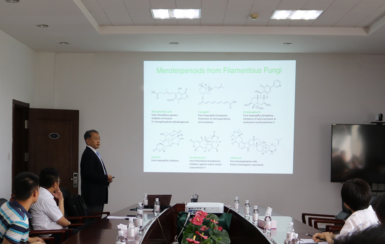 阿部郁朗教授作了題為“Engineered Biosynthesis of Medicinal Natural Products”的學(xué)術(shù)報(bào)告,報(bào)告會(huì)由酶工程研究組李盛英研究員主持。他詳細(xì)地介紹了真菌來源的復(fù)雜PKS-terpenoids類化合物生物合成及酶功能,以及通過酶改造創(chuàng)制新型“非天然”天然產(chǎn)物的研究工作。報(bào)告結(jié)束后,參會(huì)人員就相關(guān)學(xué)術(shù)問題與阿部郁朗教授進(jìn)行了深入的討論和交流。