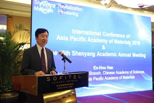 中國科學(xué)院沈陽分院院長、亞太材料科學(xué)院院長韓恩厚致辭