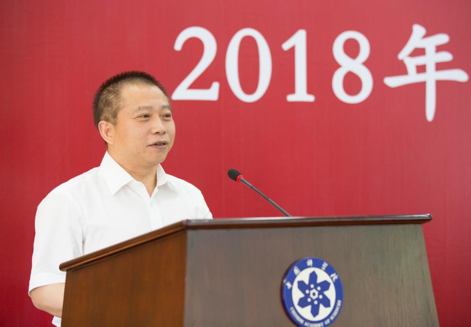 咸漠研究員代表研究所的老師們向畢業(yè)生表示祝賀,對研究生的工作給予充分肯定,感謝他們?yōu)榭茖W研究做出的貢獻,同時送上了誠摯的祝福和期待。期望畢業(yè)生們帶著祝福和期盼在未來更廣闊的舞臺上大放異彩,能成為把簡單事情重復做好的專家,把重復事情用心做好的人生贏家。并希望他們有雄心、有夢想、多思考、有膽識、能擔當,為國家,為民族,為集體,為明天,華山論劍,縱橫天地,實現(xiàn)人生夢想。