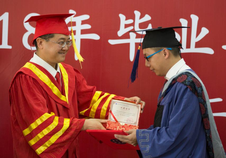 在莊嚴的國歌聲中,典禮拉開序幕。呂雪峰宣讀了畢業(yè)生名單,并向即將畢業(yè)的33名博士研究生和21名碩士研究生表示祝賀。