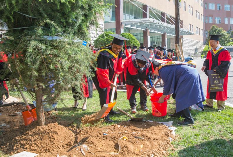 典禮結束后,畢業(yè)生和導師代表一起揮鍬培土,一棵代表 “師恩潤根 情系母?!钡乃梢倭⒃谘芯克G地中,畢業(yè)生們用心澆灌出一片新綠,將青春的記憶留在了青島能源所。(文/蘇繁星 圖/李剛)