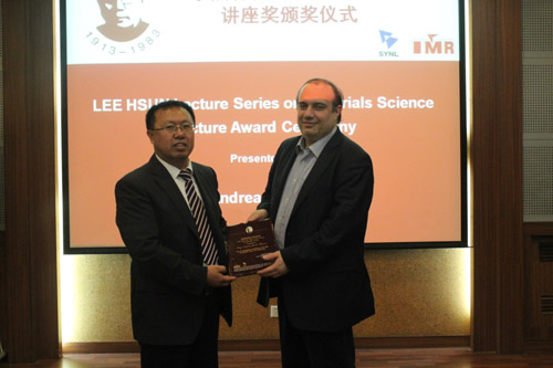 來(lái)訪期間,Andrea Carlo Ferrari教授為金屬所科研人員和研究生作了題目為“The Roadmap to Applications of Graphene, Layered Materials and Hybrid Systems”的報(bào)告。報(bào)告前,張哲峰副所長(zhǎng)為Ferrari教授頒發(fā)了李薰講座獎(jiǎng)獎(jiǎng)牌,成會(huì)明院士主持了報(bào)告會(huì)。報(bào)告得了金屬所科研人員和研究生的熱烈響應(yīng)。