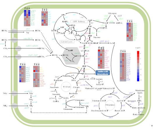 圖1. 不同脅迫對聚球藻UTEX2973中心代謝的影響
