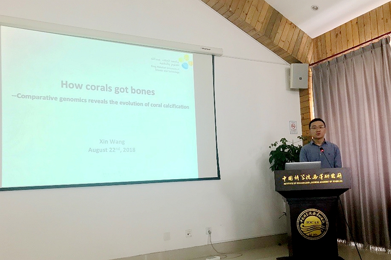 來自阿卜杜拉國王科技大學海洋生物專業(yè)在讀博士研究生王鑫做了題為“比較基因組揭秘珊瑚鈣化進化機理”的學術(shù)報告,介紹了自己在Platygyra daedalea 基因組耐高溫機制、珊瑚鈣化機制以及珊瑚共生體Symbiodinium microadriaticum 反轉(zhuǎn)座子熱激擴增等方面的研究進展。