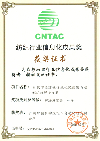 9月14日,在2018年中國(guó)紡織行業(yè)兩化融合大會(huì)上,由廣州中國(guó)科學(xué)院沈陽(yáng)自動(dòng)化研究所分所(以下簡(jiǎn)稱廣州分所)開發(fā)的“紡織印染環(huán)保設(shè)施優(yōu)化控制與遠(yuǎn)程運(yùn)維解決方案”和“針織面料印染生產(chǎn)信息化集成技術(shù)研發(fā)與創(chuàng)新應(yīng)用”項(xiàng)目分別獲得紡織行業(yè)信息化成果獎(jiǎng)解決方案獎(jiǎng)一等獎(jiǎng)和創(chuàng)新應(yīng)用獎(jiǎng)二等獎(jiǎng),廣州分所所長(zhǎng)助理、智能工廠技術(shù)研發(fā)中心主任于廣平參會(huì)領(lǐng)獎(jiǎng)。