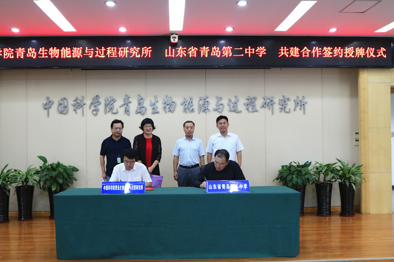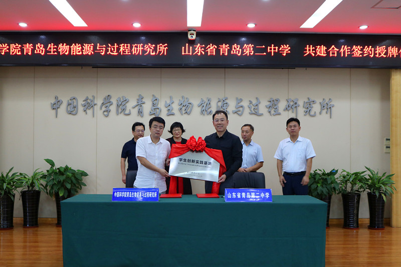 9月25日下午,中國科學院青島生物能源與過程研究所與青島第二中學共建學生創(chuàng)新實踐基地合作協(xié)議簽字揭牌儀式在青島能源所舉行。研究所黨委書記彭輝、青島第二中學校長孫先亮分別致辭并代表雙方簽約。研究所黨委副書記馮埃生、研究員代表崔球及辦公室、科技處、人事教育處等相關(guān)部門負責人和青島第二中學分校副校長于青、創(chuàng)新發(fā)展指導(dǎo)中心主任趙忠勇及部分老師代表參加儀式。儀式由馮埃生主持,他首先對孫先亮一行表示歡迎并向與會人員介紹了雙方共建創(chuàng)新實踐基地的背景情況。