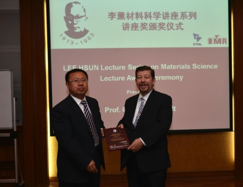 來訪期間,Guenter Schmitt教授為金屬所科研人員和研究生作了題目為“Corrosion Inhibitors and Flow Induced Localized Corrosion – Achievements and Challenges”的報告。報告前,張哲峰副所長代表金屬所為Guenter Schmitt教授頒發(fā)了李薰講座獎獎牌,韓恩厚研究員主持了報告會。報告獲得了科研人員和研究生的一致好評。