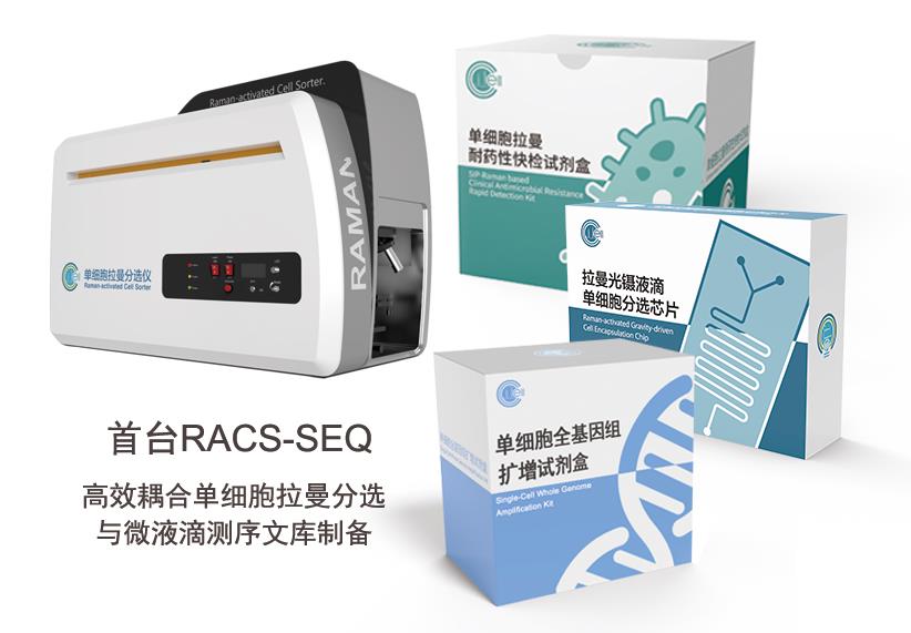 RACS-SEQ通過拉曼組(Ramanome)分析原理、拉曼光鑷液滴單細(xì)胞分選(RAGE)、流式微液滴單細(xì)胞拉曼分選(RADS)等關(guān)鍵器件的創(chuàng)新,在單細(xì)胞水平實現(xiàn)了非標(biāo)記式拉曼表型識別與功能分選,為單細(xì)胞生物學(xué)研究提供了嶄新的整體解決方案。該系統(tǒng)以免標(biāo)多維的表型組識別、精準(zhǔn)快捷的單細(xì)胞獲取,以及高效低噪的核酸擴(kuò)增等為三大特色,具有單細(xì)胞拉曼成像、表型組識別、功能分選以及測序文庫制備等四大功能。此外,系統(tǒng)還包括拉曼光鑷液滴單細(xì)胞分選芯片、單細(xì)胞全基因組擴(kuò)增試劑盒、單細(xì)胞拉曼耐藥性快檢試劑盒等附件。