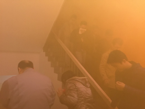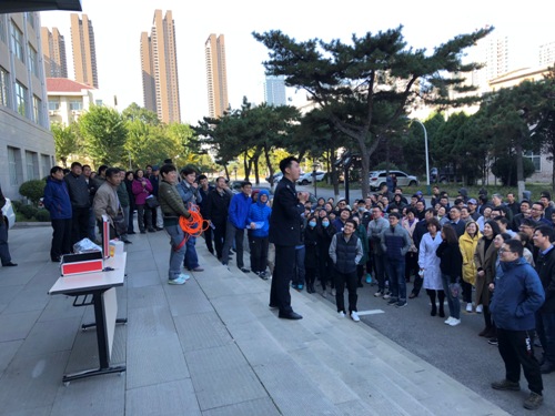 為了使疏散演練達(dá)到預(yù)期效果,提升演練的真實(shí)感,此次演練在樓內(nèi)投放了煙霧彈,并聘請(qǐng)了專業(yè)消防培訓(xùn)教官全程進(jìn)行指揮。在演練過程中,各樓職工和學(xué)生都能夠認(rèn)真地按照演練預(yù)案,準(zhǔn)備好濕毛巾捂住口鼻,低姿、安全、有秩序地從各安全通道和出口迅速疏散到樓外。參加演練的全部人員安全撤離到安全地帶后,演練總指揮遼寧益安消防知識(shí)宣傳中心的孫明龍主任對(duì)本次的消防演練情況進(jìn)行了總結(jié)講話,并為大家講解示范了安全逃生常識(shí)及注意事項(xiàng),使大家掌握了火災(zāi)中正確的逃生方法和自救常識(shí)。這次演練活動(dòng)使全所職工進(jìn)一步提升了消防安全意識(shí),掌握了消防安全知識(shí),對(duì)提高我所職工及學(xué)生的消防逃生自救技能和應(yīng)對(duì)突發(fā)火災(zāi)事件的能力起到很好效果。
