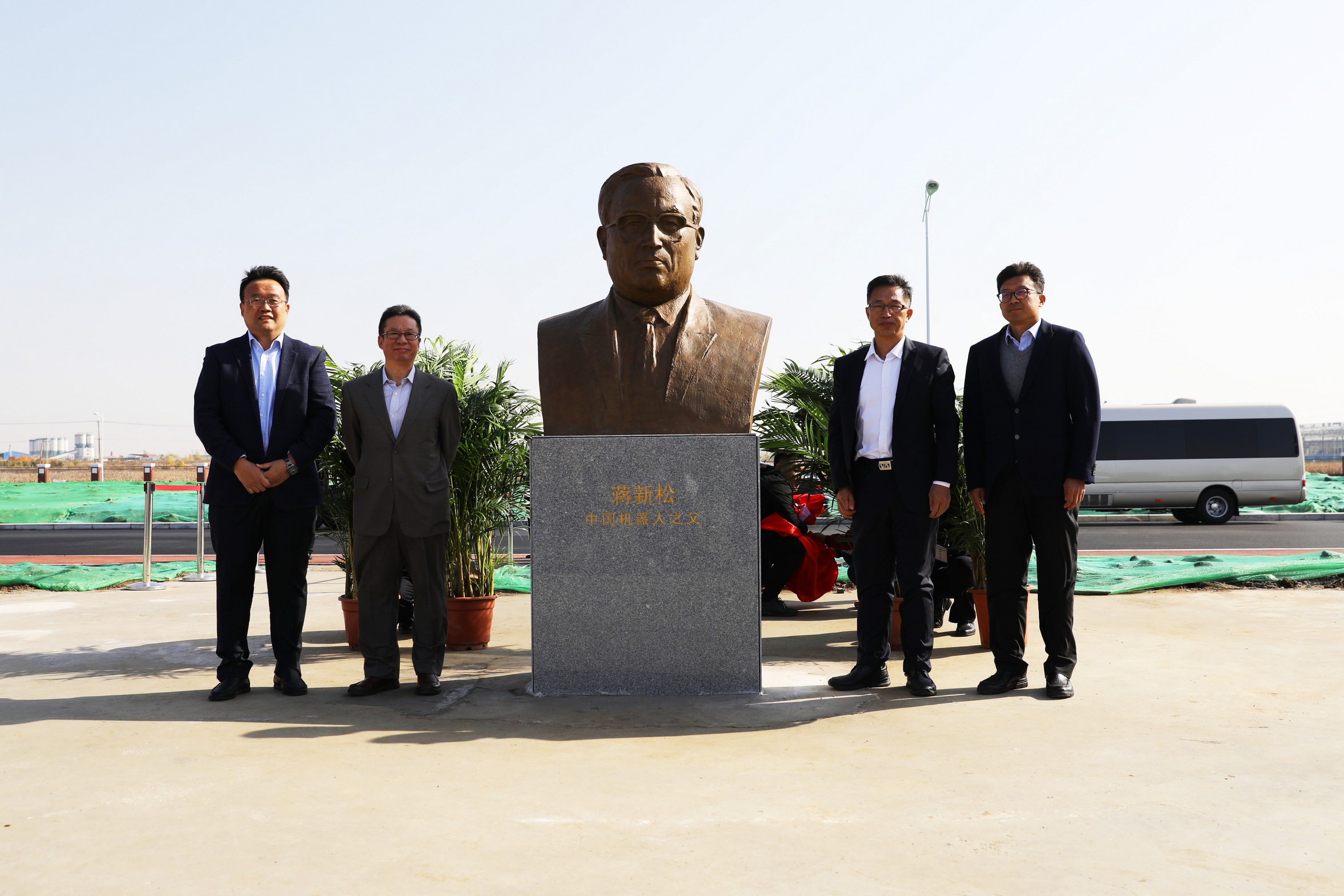 2018年恰逢中科院沈陽自動(dòng)化所建所60周年,為紀(jì)念蔣新松院士,傳承研究所“獻(xiàn)身、求實(shí)、協(xié)作、創(chuàng)新”的創(chuàng)新文化精神,在創(chuàng)新研究院新園區(qū)敬立了蔣新松塑像,供科技工作者瞻仰,鼓舞大家為了熱愛且不懈追求的科研事業(yè)而努力奮斗。沈陽自動(dòng)化所副所長史澤林主持蔣新松院士塑像揭幕儀式,與紀(jì)委書記梁波,副所長、黨委副書記孫雷,副所長李碩共同為塑像揭幕。