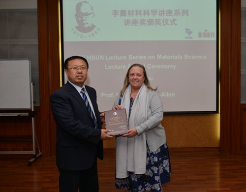 張哲峰副所長代表金屬所為K. Jane Grande-Allen教授頒發(fā)李薰講座獎獎牌