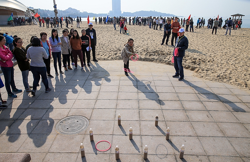 8點(diǎn)30分,比賽正式拉開帷幕,沙灘上立刻熱鬧起來。湛藍(lán)的海水,柔軟的沙灘,洋溢的笑臉,沙灘運(yùn)動(dòng)會(huì)現(xiàn)場一派生機(jī)勃勃的景象?;@球射門比賽考驗(yàn)的是足下功夫的力量與精度,二人三足注重的是團(tuán)隊(duì)的默契配合,60米托球跑要求速度與技巧的完美結(jié)合,60米跑考驗(yàn)爆發(fā)力,跳繩、鉛球、跳遠(yuǎn)等項(xiàng)目競爭激烈。經(jīng)過三個(gè)小時(shí)緊張激烈的比賽,這場既充滿趣味性,又考驗(yàn)團(tuán)隊(duì)凝聚力的沙灘運(yùn)動(dòng)會(huì)圓滿完成各項(xiàng)比賽議程,順利落下帷幕。
