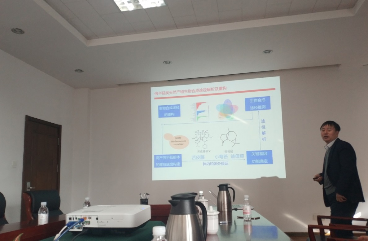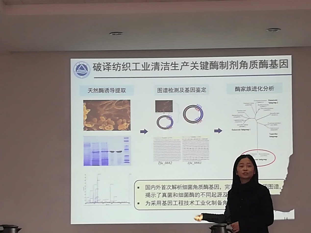 吳敬首先介紹了利用大腸桿菌分泌系統(tǒng)胞外制備工業(yè)用酶制劑的新技術(shù)與應(yīng)用,并對如何開發(fā)適用于制備工業(yè)酶制劑的野生芽胞桿菌宿主的工作進展進行了交流講解。喬建軍講解了乳酸鏈球菌細胞壁發(fā)育行程機制和耐酸機理的解析及天然藥物(如雷公藤素等)的微生物合成技術(shù)。會議期間,兩位專家結(jié)合多年來工作心得,與參會者分享了自己的做法和經(jīng)驗,與相關(guān)科研人員就其中關(guān)鍵技術(shù)問題進行了探討交流。