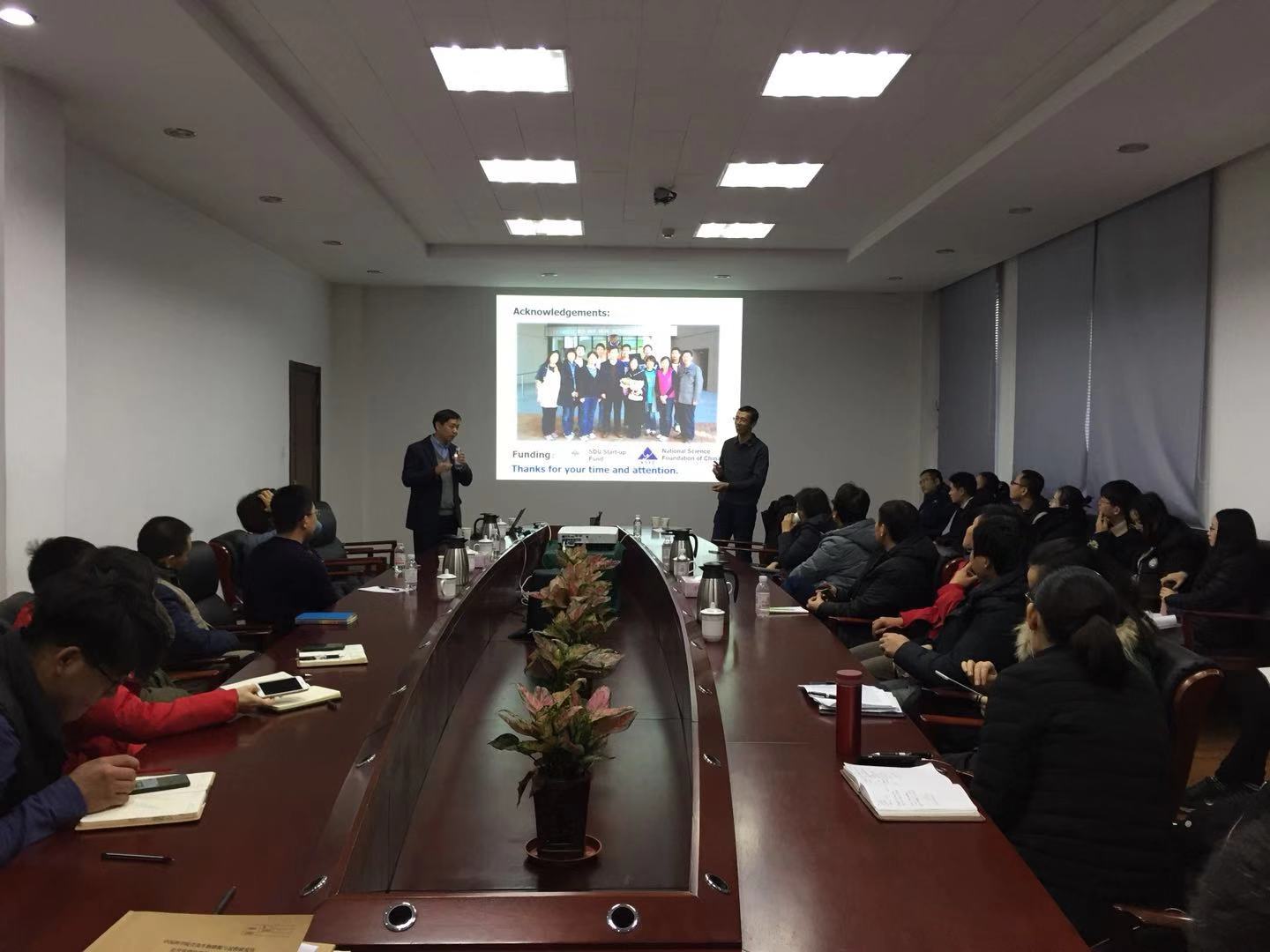 譚保才詳細(xì)講解了玉米Mutator轉(zhuǎn)座子突變體的構(gòu)建及在玉米籽粒發(fā)育調(diào)控機(jī)制解析中的重要用途,介紹了該團(tuán)隊(duì)目前在研的玉米胚和胚乳突變體的表型及其內(nèi)在分子調(diào)控機(jī)制。他們通過多個(gè)深入的研究工作,闡釋了上述基因在調(diào)控玉米質(zhì)體基因的編輯和內(nèi)含子剪接過程中的重要功能。譚保才還分享了其在ABA和類胡蘿卜素合成調(diào)控方面的研究進(jìn)展,并就玉米Mu突變體獲得及其穩(wěn)定性、Mutator轉(zhuǎn)座子原理、線粒體基因編輯等問題與參會(huì)人員進(jìn)行了深入的探討和交流。參會(huì)人員一致認(rèn)為,整場(chǎng)報(bào)告深入淺出,內(nèi)容豐富生動(dòng),既拓寬了科研工作者和研究生的研究視野,又給予了深刻的啟迪。報(bào)告結(jié)束后譚保才在付春祥和李勝軍的陪同下參觀了研究所展廳,詳細(xì)了解了研究所的建設(shè)歷程和發(fā)展情況。