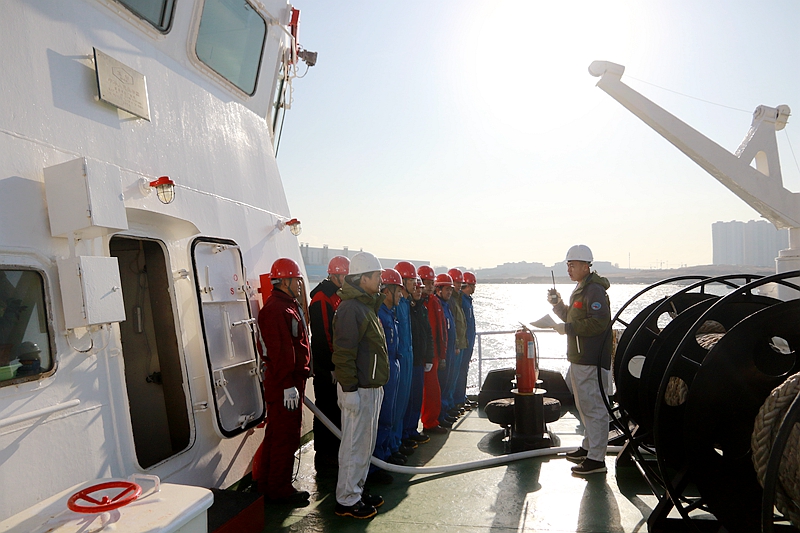 碼頭靠泊的科考船同步進行安全演習(xí)