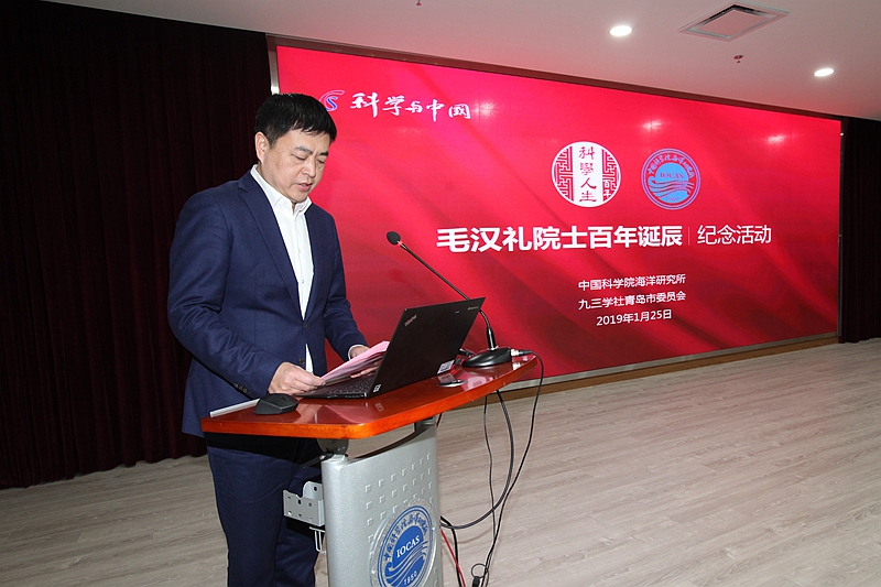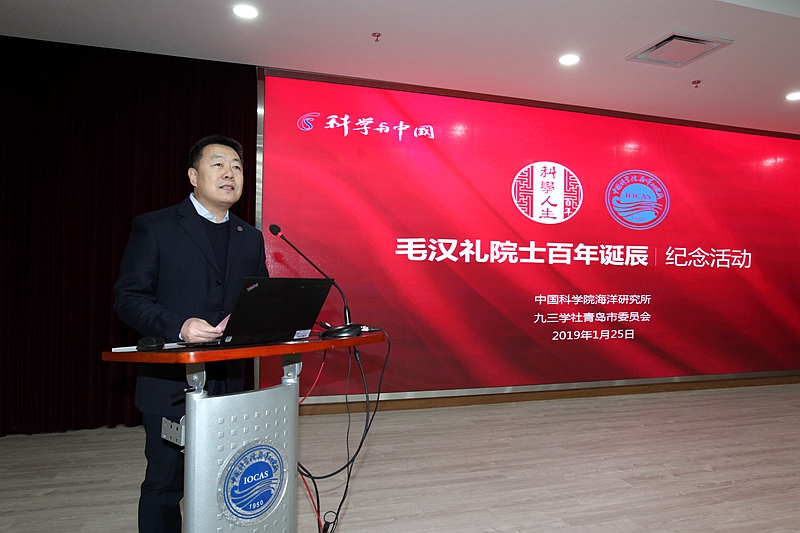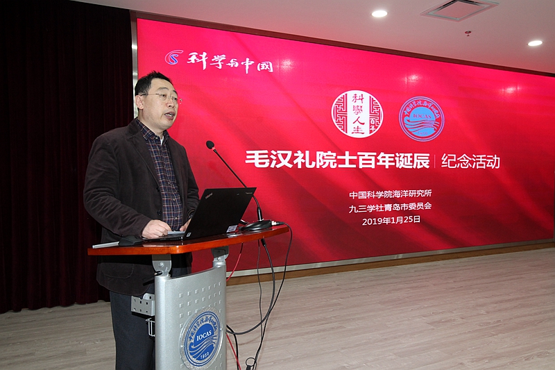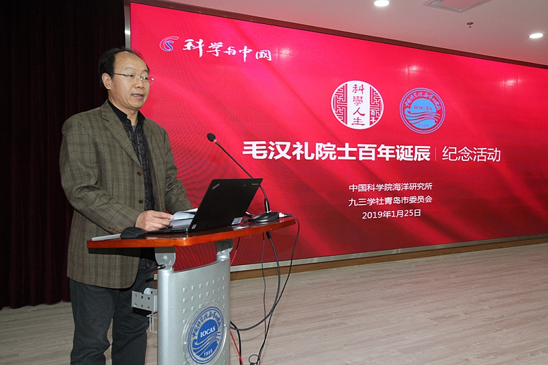 1月25日,海洋研究所舉行紀念毛漢禮院士誕辰100周年座談會,共同追思先生的家國情懷、學術風范和科學精神,緬懷先生的偉大人格、學術思想和卓越貢獻。中國科學院院士胡敦欣,美國工程院院士、中國工程院外籍院士黃鄂,中國工程院院士侯保榮,青島市委統(tǒng)戰(zhàn)部一級巡視員王振海,九三學社青島市委駐會副主委于鵬,青島市僑聯(lián)主席崔作,自然資源部第一海洋研究所黨委書記喬方利,海洋所黨委書記王輝、黨委副書記畢偉等出席會議,毛漢禮家屬代表毛彥平、學生代表及海洋所海洋環(huán)流與波動重點實驗室科研人員等近100人參加活動。畢偉副書記主持活動。