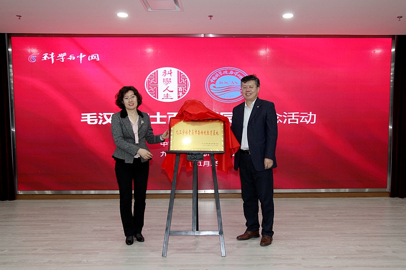 會上還觀看了毛漢禮院士生平事跡視頻片。九三學社青島市委駐會副主委于鵬、中科院海洋所黨委書記王輝共同為“九三學社青島市委傳統(tǒng)愛國主義教育基地”揭牌。