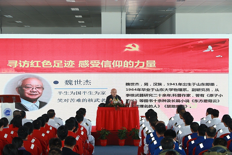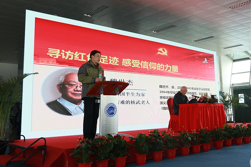 本次活動特別邀請了原中國工程物理研究院副研究員、被稱為“核武老人”的魏世杰老先生作專題講座報告。魏老根據(jù)自己的親身經(jīng)歷向大家講述了“兩彈一星”發(fā)射背后鮮為人知的故事,生動形象地再現(xiàn)了國家在“兩彈一星”時期艱難的摸索前進過程,同時分享了自己退休后的生活。魏世杰1964年從山東大學物理系畢業(yè)后進入新中國的核武器研究領域工作。上世紀五六十年代,黨中央作出了自主研制“兩彈一星”的決策,魏世杰和其他滿懷熱血的愛國青年一同踏上了開往青藏高原的列車,奔赴戈壁荒灘,在國防科研戰(zhàn)線上隱姓埋名一干就是26年,參加了中國第一顆原子彈、氫彈及導彈核武器的研制工作。負責核武器炸藥部件的性能測試,每一百次就有二十次會爆炸,幾乎每天都在與死亡共舞,但是為了國家的核盾牌事業(yè),魏世杰內(nèi)心涌起的想法卻是:“在這個地方,即便是犧牲了,也是光榮的?!蔽菏澜転槲覈暮宋涫聵I(yè)奉獻了全部青春,先后有17項科研成果獲得國防科工委獎勵,見證了我國“兩彈一星”的成功研制,被稱為“核武老人”。