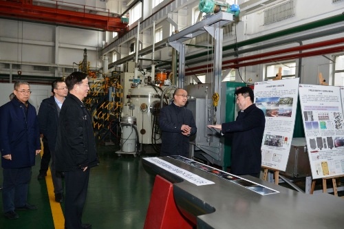 于英杰局長一行首先參觀了大型鑄鍛件和軸承鋼車間、鈦鋁合金車間、球差電鏡,隨后聽取了孫曉峰副所長作的重大科研進展和師昌緒先進材料創(chuàng)新中心進展報告及李殿中主任作的中科院C類先導(dǎo)專項方案報告。于英杰局長對我所取得的科研成果和為國家重要領(lǐng)域提供的技術(shù)支撐給予充分肯定,同時對金屬所師昌緒先進材料創(chuàng)新中心建設(shè)和C類先導(dǎo)專項方案準備給出了寶貴的意見與建議。