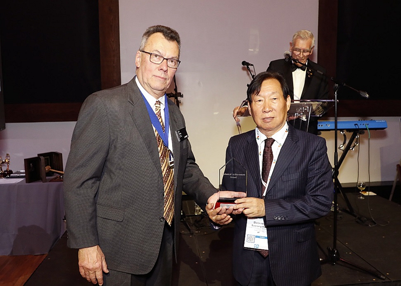 NACE國(guó)際主席Jeffrey Didas為侯院士頒獎(jiǎng)