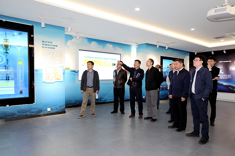 在中科院海洋生物標本館深海樣品庫,殷皓館長一行調研了海洋所近年來在西太平洋獲取的深海大型生物、巖石樣品及圖像、視頻資料,了解了海洋所在深遠海科考能力建設及探測研究方面取得的重要進展。