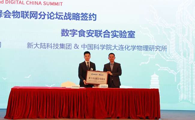 5月7日,中國科學院大連化學物理研究所受邀參加第二屆數(shù)字中國建設(shè)峰會,大連化物所副所長蔡睿在物聯(lián)網(wǎng)分論壇上代表大連化物所與新大陸科技集團簽訂共建“數(shù)字食安聯(lián)合實驗室”戰(zhàn)略合作協(xié)議。