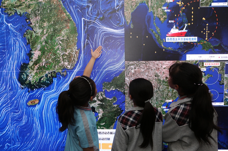 該展廳融合了海洋大數(shù)據(jù)、人工智能、多維可視化以及新一代通信網(wǎng)絡(luò)等技術(shù),通過(guò)交互式觸控屏、三維實(shí)體球、LED大屏等多媒體形式集成展示了中科院海洋大科學(xué)研究中心的數(shù)據(jù)資源、數(shù)據(jù)產(chǎn)品和專題數(shù)據(jù)應(yīng)用,內(nèi)容包括海洋科學(xué)考察船隊(duì)調(diào)查航跡、高分辨率海底地形、近海觀測(cè)浮標(biāo)、中國(guó)近海海洋數(shù)值模擬應(yīng)用以及深??茖W(xué)考察視頻等,引發(fā)公眾強(qiáng)烈興趣。