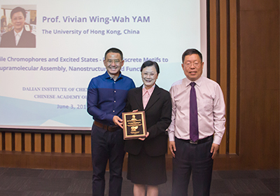 6月3日,香港大學(xué)任詠華院士應(yīng)邀在中國(guó)科學(xué)院大連化學(xué)物理研究所作了題為“Versatile Chromophores and Excited States - From Discrete Motifs to Supramolecular Assembly, Nanostructures and Functions”的70周年所慶學(xué)術(shù)報(bào)告暨第33期張大煜講座報(bào)告。報(bào)告由李燦院士主持,大連化物所科研人員和研究生近80人參加了報(bào)告會(huì)。大連化物所副所長(zhǎng)蔡睿向任詠華頒發(fā)了張大煜講座證書(shū)和大連化物所榮譽(yù)教授證書(shū)。