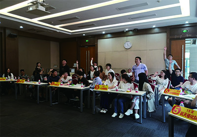 本次比賽的題目來自文化講壇第163期“孔子與《論語》”的講座內(nèi)容和前期網(wǎng)絡(luò)答題的題庫,現(xiàn)場決賽設(shè)必答題、搶答題、觀眾參與題和風(fēng)險搶答題。新穎的比賽形式和活躍的賽場氣氛充分激發(fā)了參賽選手和現(xiàn)場觀眾的競技熱情。必答題環(huán)節(jié),各代表隊?wèi){借扎實的準備連戰(zhàn)連捷,失分較少;搶答題環(huán)節(jié),選手們當(dāng)仁不讓,以迅雷不及掩耳之勢按下?lián)尨鹌?,比賽成績逐漸拉開;觀眾參與題環(huán)節(jié),現(xiàn)場親友團發(fā)揮威力,力挽狂瀾,助自己的隊伍一臂之力,幫助隊友化險為夷;最后,有兩支代表隊得分相同,他們通過風(fēng)險搶答題一決勝負。