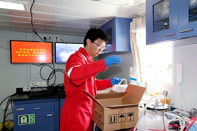 科考人員出航前檢查超低溫冰箱運(yùn)行情況