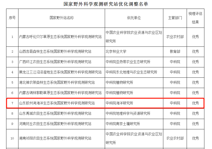 日前,在科技部組織的國家野外站梳理評估工作中,以中科院海洋所為依托單位的“山東膠州灣海洋生態(tài)系統(tǒng)國家野外科學觀測研究站”獲評優(yōu)秀。