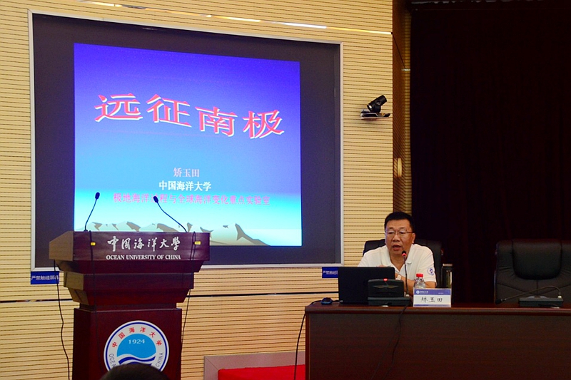 開營儀式結束后,中國海洋大學海洋與大氣學院矯玉田教授為全體營員作了題為《遠征南極》的專題講座。