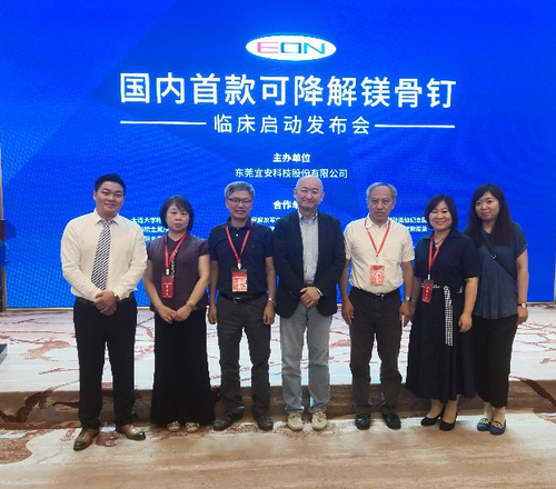 金屬鎂及其合金由于在人體環(huán)境中可發(fā)生腐蝕降解,并被人體吸收,因而可以避免臨床用鈦合金、不銹鋼等植入器件的二次手術(shù)取出問題,被譽(yù)為“革命性的醫(yī)用金屬材料”。中科院金屬研究所楊柯研究員團(tuán)隊(duì)從2004年開始可降解鎂基金屬及相關(guān)器件的研究開發(fā)工作,開發(fā)出包括骨折固定器件、心血管支架、界面釘、胃腸吻合釘、骨填充材料等多種可降解鎂基金屬醫(yī)療器械產(chǎn)品,并與國內(nèi)的相關(guān)醫(yī)療器械公司合作進(jìn)行產(chǎn)品的臨床轉(zhuǎn)化。近期,以團(tuán)隊(duì)為技術(shù)支持的東莞宜安科技股份有限公司開發(fā)的可降解純鎂骨釘產(chǎn)品獲得國家藥品監(jiān)督管理局的臨床批件,成為國內(nèi)第一個(gè)獲得臨床批件的可降解鎂基金屬III類(植入類)醫(yī)療器械產(chǎn)品,意味著我國在該領(lǐng)域中的產(chǎn)品臨床轉(zhuǎn)化獲得突破性進(jìn)展。東莞宜安科技股份有限公司于2019年7月19日召開了該產(chǎn)品的臨床啟動(dòng)發(fā)布會(huì),金屬所的楊柯研究員、譚麗麗研究員、楊院生研究員、張炳春研究員等出席了發(fā)布會(huì),楊柯研究員代表團(tuán)隊(duì)發(fā)言。