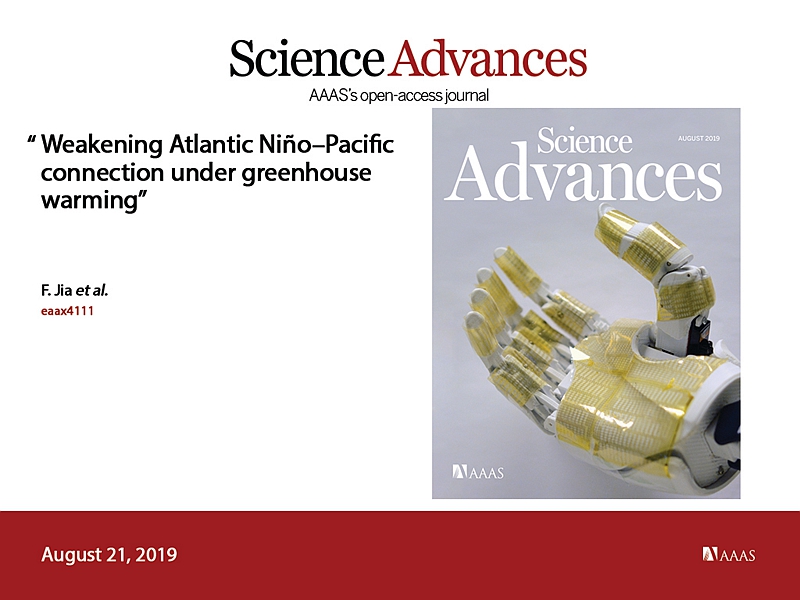 8月21日,Science子刊Science Advances以Article形式在線發(fā)表了題為Weakening Atlantic Ni?o-Pacific connection under greenhouse warming (《溫室氣體增暖背景下大西洋尼諾-太平洋遙相關(guān)減弱》)的最新研究成果,首次揭示了熱帶大西洋-太平洋跨海盆相互作用的未來變化。中科院海洋所海洋環(huán)流與波動重點實驗室賈凡副研究員為文章第一作者,澳大利亞聯(lián)邦科學(xué)與工業(yè)組織(CSIRO)蔡文炬教授和中國海洋大學(xué)吳立新院士為共同通訊作者。