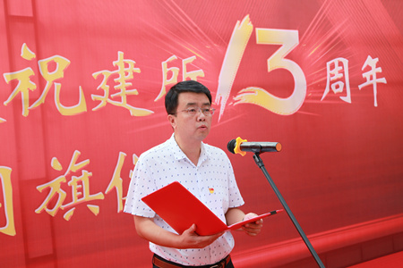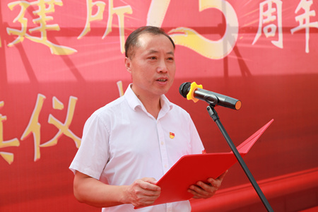 黨委書記彭輝在儀式上致辭,他說:十三年前的今天,中科院、山東省、青島市三方簽署共建協(xié)議,開啟了青島能源所的建設(shè)?;仡欉^去,在三屆所領(lǐng)導(dǎo)班子、黨委的團(tuán)結(jié)帶領(lǐng)下,研究所廣大職工學(xué)生齊心協(xié)力,奮發(fā)圖強(qiáng),聚焦新能源與先進(jìn)儲能、新生物、新材料領(lǐng)域,為國家和區(qū)域經(jīng)濟(jì)社會發(fā)展作出了重要貢獻(xiàn)。十二五、十三五期間科研成果取得重大突破,平臺建設(shè)、人才隊伍、成果轉(zhuǎn)化、基建投資等奠定了堅實基礎(chǔ),形成了“格物致知、篤志行遠(yuǎn)”的所訓(xùn)文化。當(dāng)前我們正積極謀劃十四五規(guī)劃,積極推動中科院潔凈能源創(chuàng)新研究院(青島)建設(shè),特別是今年6月17日,山東省、中科院、青島市三方簽署協(xié)議,確定以我所為依托單位,共同籌建山東能源研究院,以滿足山東省新舊動能轉(zhuǎn)換重大需求,支撐國家能源創(chuàng)新體系建設(shè),使我們又迎來重大發(fā)展機(jī)遇。面對當(dāng)前形勢任務(wù),我們青能所人應(yīng)該再次揚帆起航,戮力同心、砥礪前行,為研究所的發(fā)展再次貢獻(xiàn)智慧力量。再過十三天,我們將迎來祖國70年華誕,我們既要歌頌偉大祖國的豐功偉績,同時也要深刻認(rèn)識到我們肩負(fù)的歷史使命和責(zé)任。今年也是我院建院70周年生日,中科院作為國家科技創(chuàng)新的國家隊、戰(zhàn)略科技力量,應(yīng)該始終銘記與踐行科技報國的初心和使命,弘揚老一輩科學(xué)家精神,學(xué)習(xí)繼承他們胸懷祖國、服務(wù)人民的愛國精神,勇攀高峰、敢為人先的創(chuàng)新精神,追求真理、嚴(yán)謹(jǐn)治學(xué)的求實精神,淡泊名利、潛心研究的奉獻(xiàn)精神,集智攻關(guān)、團(tuán)結(jié)協(xié)作的協(xié)同精神,匯聚起科技報國的強(qiáng)大力量。