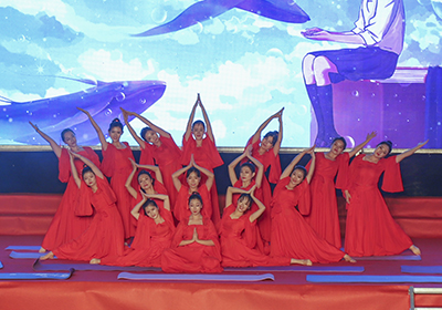 第三篇章“追夢”體現(xiàn)了大連化物所人追尋夢想,堅定前行的情懷。瑜伽舞蹈《大魚》舒展優(yōu)美,贊美了為實現(xiàn)夢想而勇敢的擔當與守護。大連化物所自由基樂隊與耿旭輝副研究員、校友舒清柱聯(lián)袂表演的《真的愛你》演奏精湛,演唱精彩,唱出了每一個化物所人的心聲。舞蹈《我的夢》優(yōu)美而有力量,跳出了化物所人追夢路上永不言棄的執(zhí)著追求。由青年科學家、管理骨干、職工、學生、校友共同演繹的歌曲《我們都是追夢人》展現(xiàn)了新一代化物所人為了夢想勇敢拼搏的信心和決心。本篇章最后是全體演員齊唱的《我和我的祖國》,歌聲引起全場觀眾大合唱,伴著深情的歌聲,舞動的熒光棒照亮了每個人笑意盈盈的臉龐,燈光照耀所園區(qū)上空的夜幕,在每個人腦海中留下今宵永恒的印記。