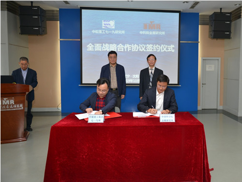 10月17日,我所與中國(guó)船舶重工集團(tuán)第七一九研究所(簡(jiǎn)稱中船重工719所)簽訂了全面戰(zhàn)略合作協(xié)議。簽約儀式由金屬所副所長(zhǎng)孫曉峰主持。