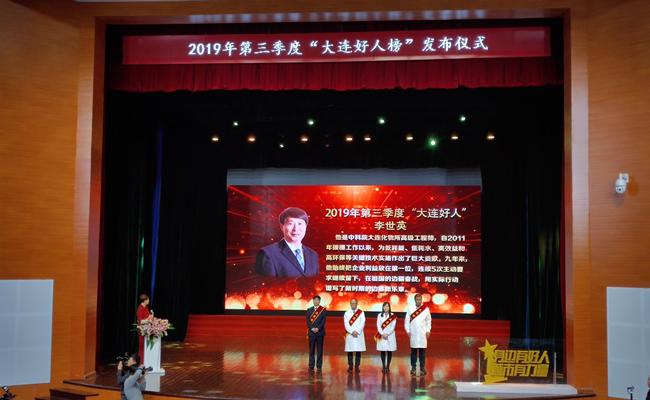 10月25日下午,由大連市委宣傳部、大連市文明辦主辦的2019年第三季度“大連好人榜”發(fā)布儀式在大連海事大學(xué)舉行,現(xiàn)場(chǎng)公布敬業(yè)奉獻(xiàn)、助人為樂、見義勇為、誠(chéng)實(shí)守信、孝老愛親5種類別23名“大連好人”。中國(guó)科學(xué)院大連化學(xué)物理研究所李世英高級(jí)工程師獲評(píng)敬業(yè)奉獻(xiàn)“大連好人”。最美奮斗者、時(shí)代楷模、全國(guó)道德模范曲建武為李世英頒獎(jiǎng)。