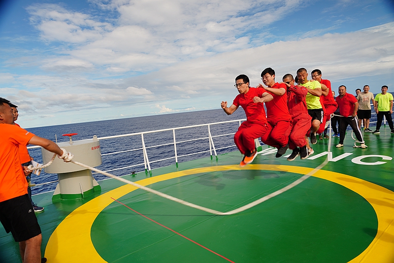 正在西太平洋執(zhí)行國(guó)家自然科學(xué)基金委2019年共享航次的“科學(xué)”號(hào)科考船在海上同步舉行了別開生面的趣味運(yùn)動(dòng)會(huì)。根據(jù)船上空間和器械條件,共設(shè)置集體跳繩、六人接力托球跑、雙人夾球跑三個(gè)集體項(xiàng)目,以及乒乓球、地滾球、投籃、飛鏢四個(gè)個(gè)人項(xiàng)目,為緊張的科考工作增添了樂(lè)趣。