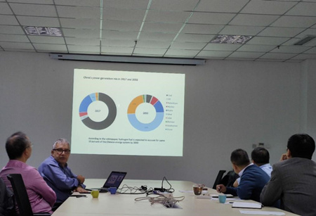 應(yīng)研究所多相催化轉(zhuǎn)化研究組研究員莊慶發(fā)的邀請(qǐng),加拿大魁北克大學(xué)教授Richard Chahine和武漢理工大學(xué)教授肖金生一行來所開展學(xué)術(shù)交流。訪問期間,Richard Chahine做了題為“Role of hydrogen in energy transition”和“Hydrogen storage: From material properties to system design”的學(xué)術(shù)報(bào)告。報(bào)告主要介紹了氫作為清潔能源載體在能源的生產(chǎn)、儲(chǔ)存和使用鏈條中的巨大應(yīng)用潛力,以及具體到儲(chǔ)存環(huán)節(jié)如何將材料性質(zhì)調(diào)控與工程系統(tǒng)設(shè)計(jì)進(jìn)行有機(jī)結(jié)合。
