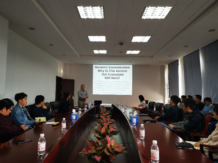 Drake首先做了題為“Darwin’s Invertebrates: Why Is This Primitive Gut Ecosystem Still Here?”的學術報告,詳細介紹了他40年以來對生物與環(huán)境相互作用關系的理解,重點介紹了蚯蚓腸道如何作為暫時的微生物生存綠洲,提供豐富的碳源;如何對不同種類的微生物進行選擇性的富集,改變土壤中微生物多樣性和結構的過程,并對整個過程中的反硝化作用、甲烷合成作用、發(fā)酵過程以及溫室氣體生成機理進行了詳細的闡述。隨后,Drake根據(jù)多年擔任AEM期刊主編的審稿經(jīng)驗,做了題為“The Art of Scientific Publishing”的報告,特別指出科研工作者要具備應有的學術道德,耐心講述論文寫作中應該注意的問題,詳細指導如何將選擇題目、編寫摘要,如何將獲得的實驗數(shù)據(jù)和結果總結為精彩的論文并成功發(fā)表。