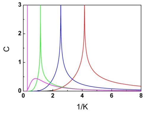 三維伊辛模型的精確解:不同相互作用參數(shù)條件下比熱與溫度的依賴關(guān)系
