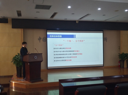11月25日,青島能源所組織召開(kāi)了第二屆職工代表大會(huì)第八次全體會(huì)議。人事教育處副處長(zhǎng)蘇華做了研究所《事業(yè)單位養(yǎng)老保險(xiǎn)改革政策及研究所相關(guān)工作介紹》的匯報(bào),詳細(xì)介紹了自2014年10月國(guó)家啟動(dòng)事業(yè)單位養(yǎng)老保險(xiǎn)改革工作以來(lái),研究所參與事業(yè)單位養(yǎng)老保險(xiǎn)改革的政策依據(jù)和工作進(jìn)展,重點(diǎn)介紹了按照國(guó)家要求在山東省建立社會(huì)保險(xiǎn)賬戶、設(shè)立基本養(yǎng)老保險(xiǎn)和職業(yè)年金項(xiàng)目、改革后養(yǎng)老保險(xiǎn)基數(shù)計(jì)算方法、改革后人均月繳納社保上調(diào)水平、改革后新政策下退休待遇核算方法等內(nèi)容。人事教育處工作人員對(duì)職代會(huì)成員提出的“養(yǎng)老保險(xiǎn)基數(shù)計(jì)算組成”、“人均月社保繳費(fèi)上調(diào)水平”、“退休待遇核定”等具體問(wèn)題做了詳細(xì)解答。